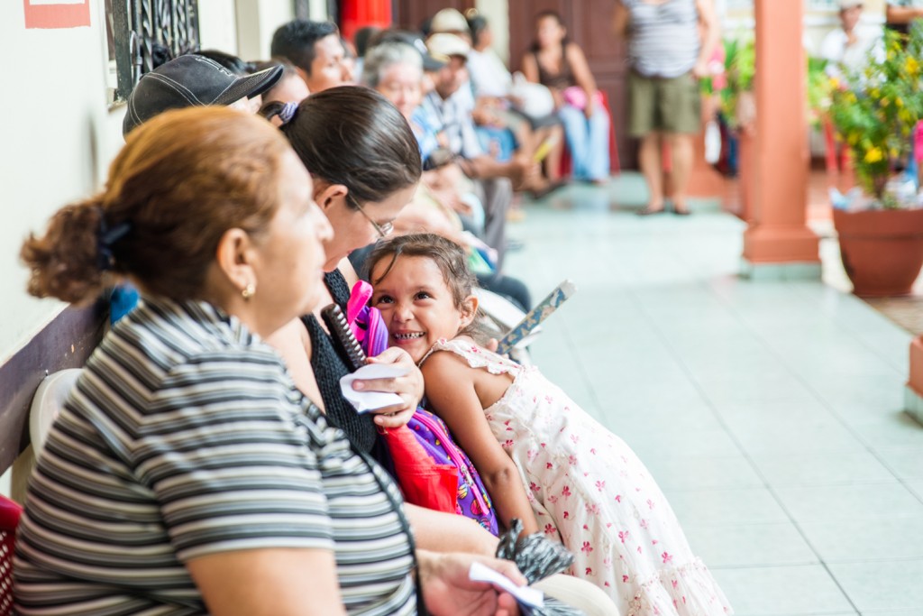 Vid kommunhuset i San Pedro Mashauat slingrar sig en enorm kö med människor som väntar på att få göra en synundersökning, vi räknar snabbt att det är cirka 400 personer. Dem som har råd betalar 1 USD för undersökningen och glasögon. De som inte har råd behöver inte betala. Intäkterna Vision for All får in går till att betala värdfamiljerna för mat och husrum och andra nödvändigheter som arbetsgruppen kan komma att behöva under resans gång.