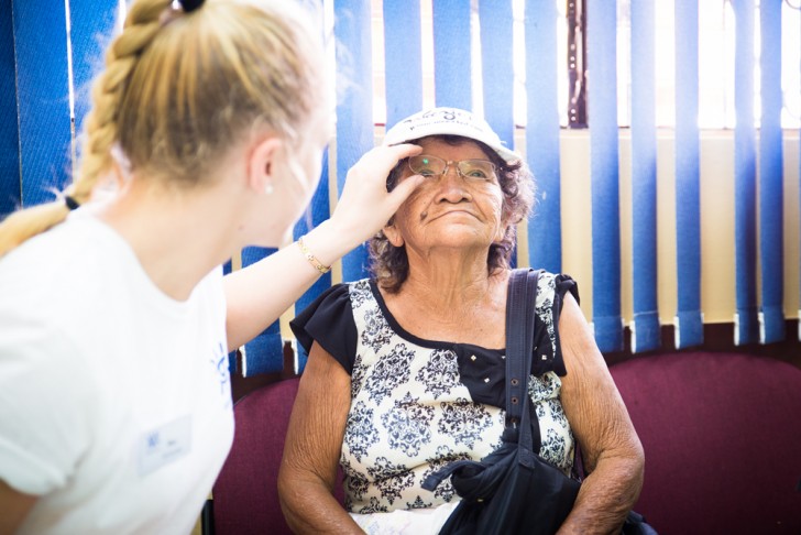 Det funkade för de flesta tills det kommer fram en man i 90 års åldern. Att han kommer ensam är ovanligt. Alla äldre kommer med någon som tar hand om dem. Med det gjorde inte han. Han är näst intill blind på ena ögat och han behöver väldigt starka bifokala glasögon (glasögon som har olika styrkor i ett och samma glas) som vi inte har just då. När jag ber honom komma tillbaka imorgon blir han väldigt ledsen. Han förklarar att han är helt ensam och saknar familj som kan hjälpa honom. Eftersom han har svårt att gå så kan han inte ta sig till platsen igen. Det skär i hjärtat och mannens situation känns hjälplös. Efter att ha pratat med optikern Maja så hittar vi en lösning för honom där han får flera par glasögon med olika styrkor som han kan varva emellan. När han sätter på sig glasögonen en efter en och vi ber honom läsa olika rader på syntavlan utbrister han att han kan se! Mission completed, och känslan som uppstår att se någon bli så glad är helt ovärderlig.