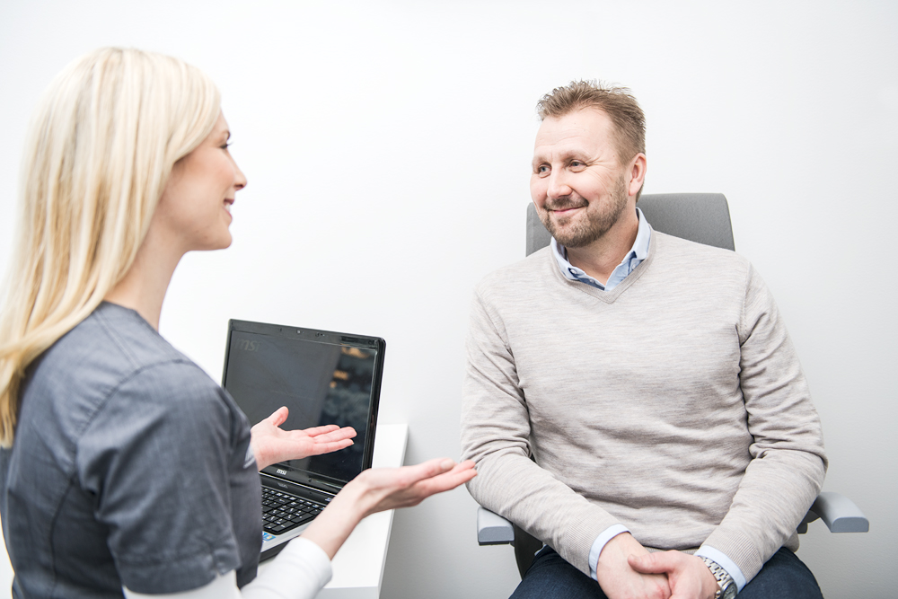 Därefter träffar du din ögonläkare som gör en egen, oberoende undersökning och säkerställer att dina ögon är friska och lämpliga för en linsbytesoperation. Om läkaren upptäcker något som kan påverka resultatet, avstår vi från att operera.